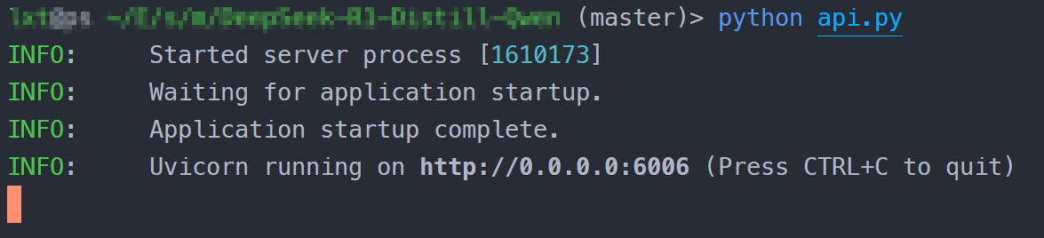python api.py加载完毕后出现如下信息说明成功。