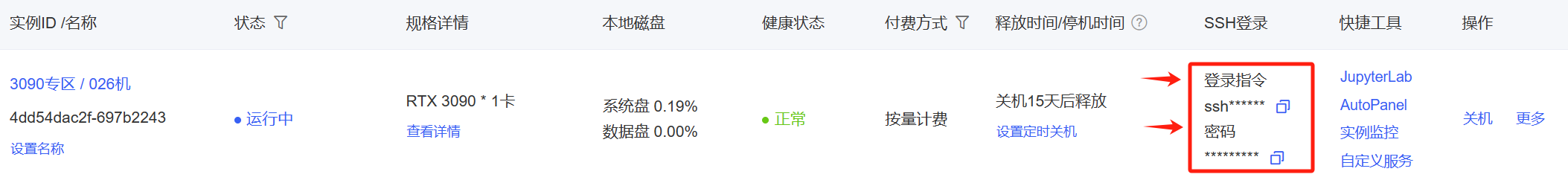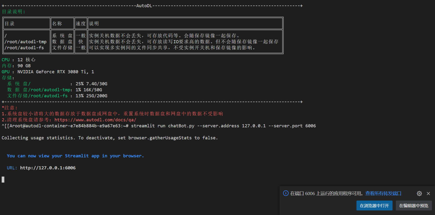 这里可以先进入autodl平台,初始化机器对应区域的的文件存储,文件存储路径为'/root/autodl-fs'。 该存储中的文件不会随着机器的关闭而丢失,这样可以避免模型二次下载。